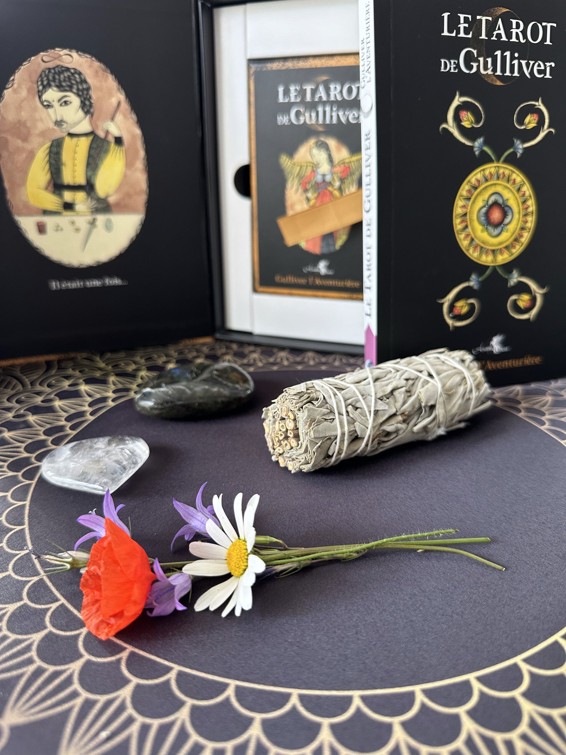 LE TAROT de Gulliver vous invite à préparer votre balluchon et à entrer dans l'univers de Gulliver l'Aventurière ! La célèbre artiste vous emmène dans sa vision romanesque et revisite les 78 lames du Tarot de Marseille dans un magnifique coffret.