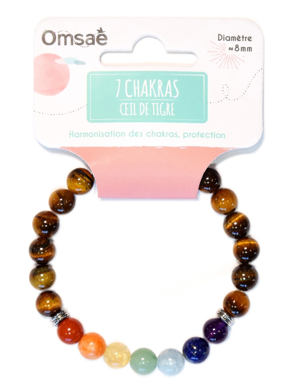 Bracelet 7 chakras en perles rondes d'œil de tigre 8 mm Omsaé
