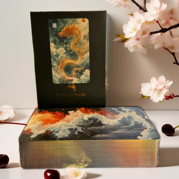 I-Ching Oracle Dragon Edition est inspiré de l'ancienne tradition draconique chinoise, cette nouvelle interprétation de l'Oracle I-Ching offre des éclairages qui résonnent avec l'énergie unique de l'année du Dragon. Les 64 hexagrammes traditionnels sont représentés par des créatures mythologiques, dont les 4 bêtes sacrées, les 5 dragons élémentaires, les 9 fils du dragon et les 12 animaux du zodiaque. L'œuvre d'art fusionne l'esthétique traditionnelle chinoise avec le design contemporain.
