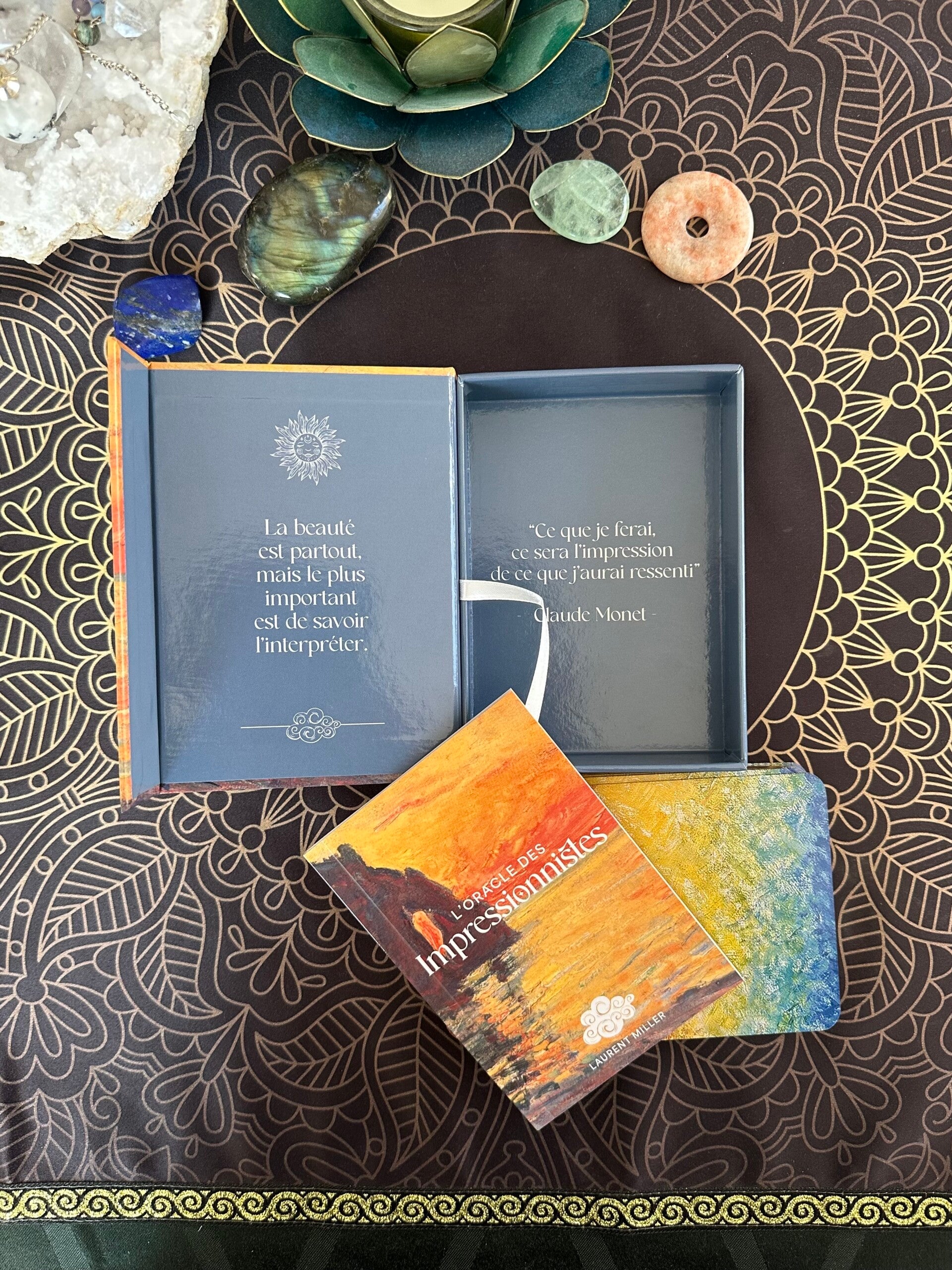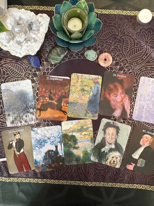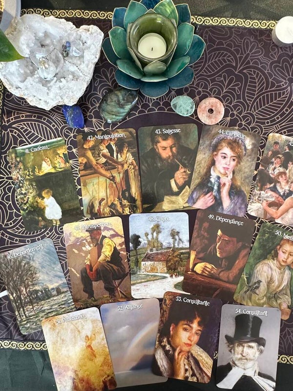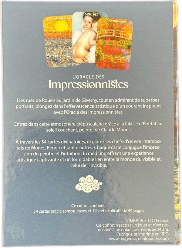 Découvrez L’Oracle des Impressionnistes, un jeu divinatoire unique créé par Laurent Miller, originaire de Rouen en Normandie. Inspiré par les chefs-d’œuvre des grands maîtres impressionnistes, cet oracle sublime vous plonge dans un univers artistique riche et coloré.