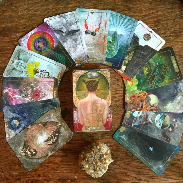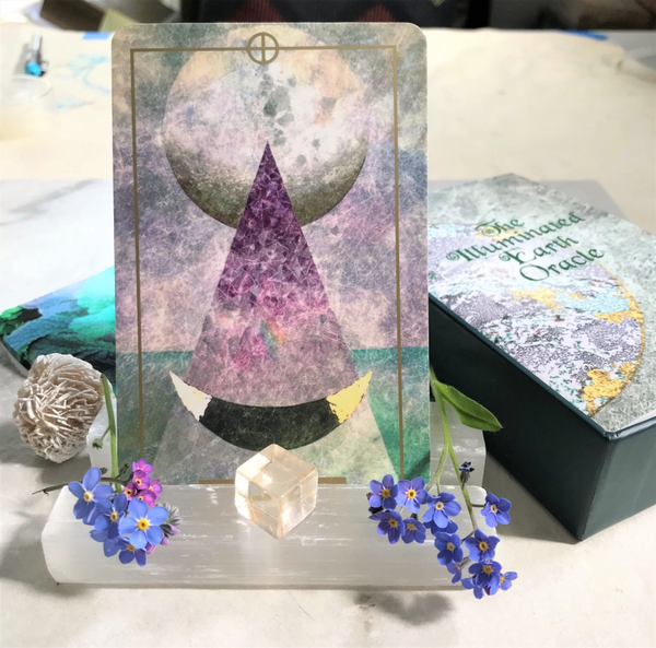 The Illuminated Earth Oracle Deck est d'un jeu d'oracle de 63 cartes inspiré par la beauté et le mystère du monde naturel et de sa relation avec l'esprit humain. Chaque image est peinte à la main de manière intuitive et collée à l'aide de divers supports, d'imprimés vintage et de papier marbré à la main.