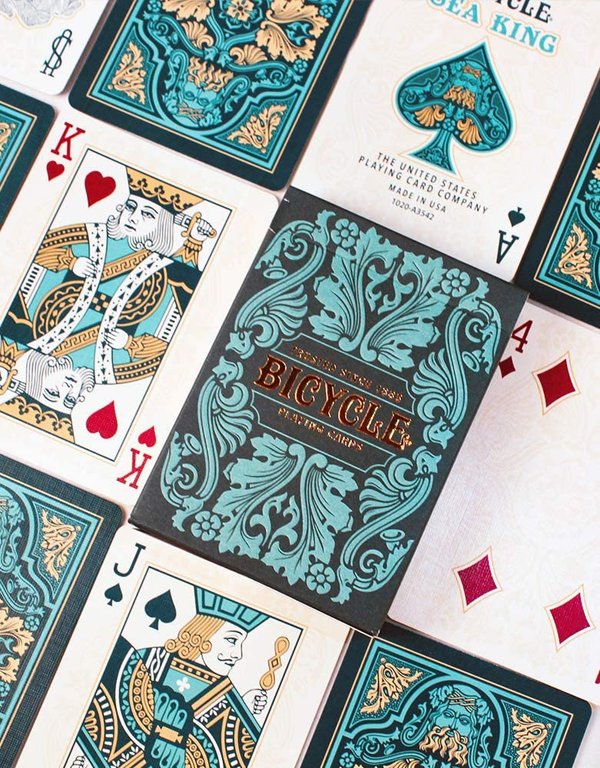 Avec les cartes Bicycle® Sea King, jouez entre amis et découvrez les bleus et les bleus turquoises richement détaillés du dos et des faces des cartes ! Avec son bord doré et gaufré, ce jeu est digne d'un roi ! Contenu : 52 cartes + 2 jokers. Dimensions : 63,5 x 88,9 mm (2,5 po x 3,5 po).